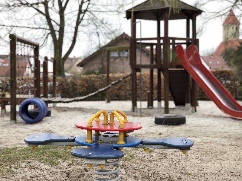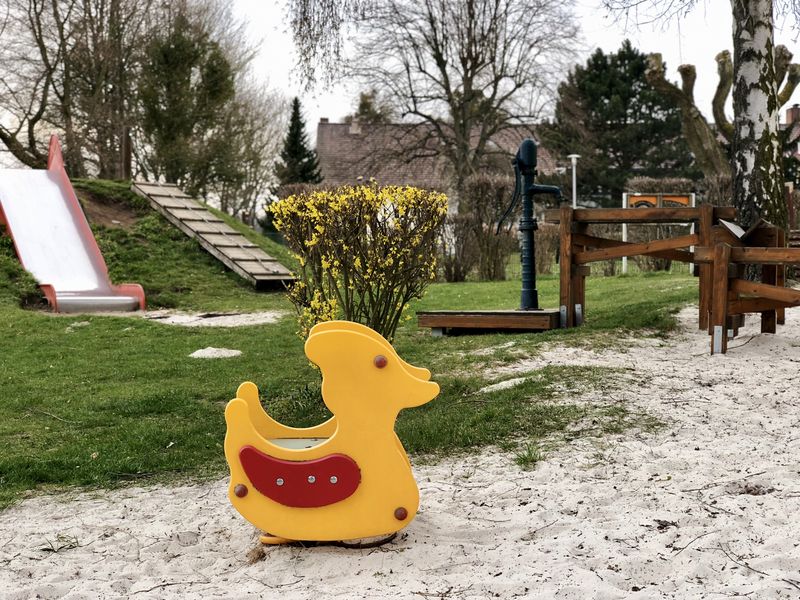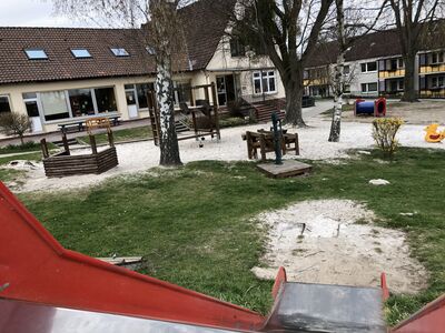 Zum Glückauf-Kindergarten gehört das Außengelände mit Spielgeräten.
