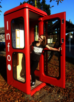 • hat auf Evers-Platz, Dorfmitte, in einer roten Telefonzelle einen Infostand