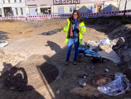 Interessante Spuren aus der Vergangenheit gab es beim Pressetermin auf der Baustelle EDEKA zu bestaunen. Seit Beginn der archäologischen Untersuchungen im Januar wurden mehr als 200 Befunde festgestellt. Es werden täglich Funde wie Keramik, Knochen sowie Metall- und Glasfragmente geborgen. Selbst ein sechsseitiger Spielwürfel aus Knochen wurde entdeckt. Die Schilderungen der Archäologin Ulrike Lutterbeck versetzen die Zuhörenden in längst vergangene Zeiten.