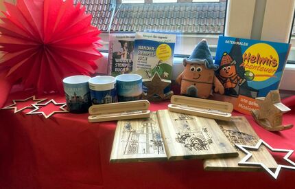 Wie wäre es mit einem schicken Porzellan-Becher mit Helmstedt-Motiven oder dem beliebten „Helmi“, der als Kuscheltier den Helmstedter Hausmannsturm nachbildet? „Frühstücksbretter und edle Holz-Kugelschreiber sowie Wander-Stempelbücher runden das Angebot ab“, informiert Ina Goschnick vom zuständigen Fachbereich.