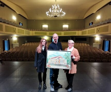 Die Helmstedter Malerin Ingeborg Nowak hat der Stadt ein Ölbild des Brunnentheaters gespendet. Das Bild wurde nun dem Team des Brunnentheaters übergeben und hat gleich einen angemessenen Platz im Foyer bekommen. Ingeborg Nowak hat bei der Übergabe verraten, dass die Idee einer Serie mit Helmstedt-Motiven während eines Kuraufenthaltes entstanden ist. „Wir danken Frau Nowak herzlich für ihre Spende und wünschen ihr weiterhin kreative Ideen und viel Schaffensfreude bei der Erstellung von Gemälden“, sagt Holger Becker, bei der Stadt Helmstedt zuständig für das Helmstedter Theater.