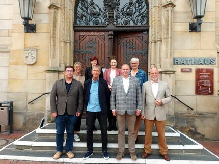 An der Feierstunde im Rathaus nahmen auch der Erste Stadtrat Henning Konrad Otto, Geschäftsbereichsleiter Thomas Bode, die Justiziarin Julia Vahldieck, der stellvertretende Betriebsleiter der AEH, Jens Flemke, die stellvertretende Fachbereichsleitung Personal und Organisation, Andrea Karwacki, sowie die Personalratsvorsitzende Denise Kuhnt und die Gleichstellungsbeauftragte Claudia Löw teil.