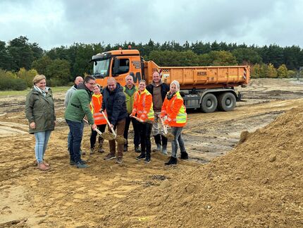 Derzeit entsteht im Gewerbegebiet Neue Breite Nord ein neuer Firmensitz der Firma Meyer Infrastruktur GmbH, die als mittelständisches Unternehmen bereits mehr als 20 Jahre im Landkreis Helmstedt ansässig ist. Auf einer Fläche von rund 15.000 Quadratmetern entsteht ein neues Firmengebäude mit viel Platz für moderne Büros, Werkstätten, Technik, einen großen Fuhrpark und die Baustoffaufbereitung bietet. Am Dienstag trafen sich Firmenvertreter auf dem Gelände Am Lohen mit Bürgermeister Wittich Schobert zum ersten Spatenstich.