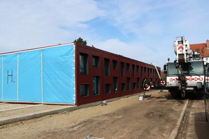 „Nachdem in den vergangenen Wochen alle baulichen Vorbereitungen – wie z.B. die Herstellung der Fundamente und Vorbereitung der Hausanschlüsse -  abgeschlossen wurden, werden derzeit die einzelnen Raummodule angeliefert, aufgestellt und miteinander verbunden. Anschließend erfolgt der finale Innenausbau, so dass der Mobilbau in wenigen Wochen bezugsfertig sein wird“, blickt Geißler auf die Fertigstellung und damit Nutzbarkeit der mobilen Unterrichtsräume.