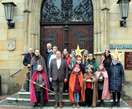 "Wir wünschen euch ein erfolgreiches Jahr: Caspar, Melchior und Balthasar". Wenn dieser Vers erklingt, sind die Sternsinger der katholischen Kirchengemeinde St. Ludgeri da! Heute durften wir sie gemeinsam mit Pfarrer Thomas Jung und weiteren Begleitern im Rathaus begrüßen. „Es ist eine gute Tradition, dass die Sternsinger am 6. Januar den Neujahrsgruß ins Rathaus bringen und ihren Segensspruch 20*C+M+B+23 an die Rathaustür schreiben“, sagt Bürgermeister Wittich Schobert.
