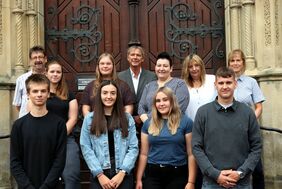 hintere Reihe von links: Ralf Bosse und Christina Wunderling (beide Personalrat), Fiena Seidel (Jugend- und Auszubildendenvertretung), Bernd Geisler (Betriebsleiter Abwasserentsorgung), Tanja Lüdtke (Ausbildungsleiterin), Bettina Hilbl (stellvertr. Gleichstellungsbeauftragte), Babette Ulbricht (Fachbereichsleiterin Personal und Organisation)