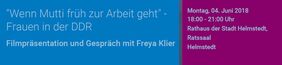 Der Verein Grenzenlos und die Stadt Helmstedt laden in Kooperation mit der Friedrich-Naumann-Stiftung und der Gleichstellungsbeauftragten der Stadt Helmstedt zu einer Filmvorführung am Montag, 4. Juni, 18 Uhr, mit anschließender Diskussion in den Ratssaal der Stadt ein. Präsentiert wird der Dokumentarfilm „Wenn Mutti früh zur Arbeit geht“ von der Autorin und Regisseurin Freya Klier. Der Eintritt zu der öffentlichen Veranstaltung ist frei.