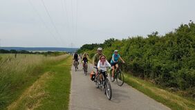 „Ich bin völlig begeistert“, sagte Viola Vorbrod, die Sprecherin des Agenda 21-Arbeitskreises der Stadt Helmstedt. Mit so viel Zulauf habe sie dann doch nicht gerechnet. Eine bunte Mischung von Radlern zwischen 14 und 72 Jahren machte sich auf den Weg, um neues Terrain zu erobern. Es sollte eine der 20 schönsten Radtouren aus dem Buch von Thomas Kempernolte gefahren werden – die Ölper-Route. Bei schönem Wetter ging es auf die Strecke. Nachdem in Rottorf am Klei noch zwei Radlerinnen zur Gruppe stießen, erzählte der heutige Eigentümer der ehemaligen Eisenerzgrube Rüdiger Pietrek, der die Aktivitäten der Agenda 21 schon seit vielen Jahren unterstützt, etwas über Eisenerz und den Schulwald, der in Kooperation mit der Stiftung Zukunft Wald und dem Helmstedter Gymnasium Julianum dort angelegt worden ist.