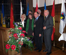 Auf ihre seit 30 Jahren bestehende Städtepartnerschaft konnten Anfang Dezember die Städte Vitré und Helmstedt blicken. Bürgermeister Heinz-Dieter Eisermann empfing im Sitzungssaal des Rathauses neben dem stellvertretenden Bürgermeister aus Vitré, Alain Bouvet, und der Vorsitzenden des französischen Partnerschaftskomitees, Odile Bouvet, weitere Gäste und ihre Gastfamilien sowie Partnerschaftsfreunde. Im Oktober 1978 erfolgte im Rahmen eines Festaktes die Unterzeichnung der Partnerschaftsurkunde im Helmstedter Rathaus. Der Gegenbesuch zur Unterzeichnung der Urkunde in Vitré fand im Frühjahr 1979 statt. Wie der stellvertretende Bürgermeister aus Vitré, Alain Bouvet, mitteilte, fällt das 30-jährige Jubiläum der Städtepartner-schaft im kommenden Sommer mit der 1000-Jahrfeier von Vitré zusammen. Er würde sich daher sehr freuen, wenn zu diesem Anlass auch viele Helmstedter nach Vitré kommen würden. Besonders gedankt wurde Renate und Heinz Jordan (Städtebeauftragter für Vitré), die sich in den vergangenen 30 Jahren unermüdlich für die Partnerschaft eingesetzt haben. Margrit Niemann, zuständig für die Jugendbegegnungen des Helmstedter Partnerschaftsvereins, blickte auf eine große Anzahl von Jugendaustauschen mit Vitré zurück. Musikalisch umrahmt wurden die Feierlichkeiten vom Duo Katharina Bosse (Gesang) und Sebastian Scharf (Gitarre).