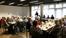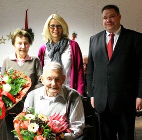 Mitarbeiterinnen aus dem Personalservice hatten die Feier liebevoll vorbereitet. Für alle Teil-nehmer gab es mit Blick auf das nahende Weihnachtsfest kleine Geschenke. Editha Franke und Kurt Baumgart bekamen als älteste Teilnehmer als Anerkennung einen Blumenstrauß von Bürgermeister Wittich Schobert überreicht. Wie schon im vergangenen Jahr las er an-schließend eine Weihnachtsgeschichte vor.