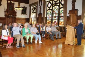 Am Freitagvormittag begrüßte der Ratsvorsitzende Dr. Karl Birker 24 ehemalige Abiturienten im Ratssaal der Stadt Helmstedt. Anlässlich ihres 50. Abiturjubiläums reisten die Abiturienten aus ganz Deutschland an, um diesen besonderen Tag in Helmstedt feiern zu können. Während des Empfangs zeigte sich schnell ein großes Interesse an ihrer ehemaligen Heimat. So nutzten die Jubilare die Gelegenheit, Dr. Karl Birker über den aktuellen Stand der Stadt Helmstedt zu befragen und sich Antworten zu den Veränderungen vor Ort geben zu lassen. Im Anschluss an den Empfang verschafften sich die Abiturienten durch einen Besuch im Schöninger Paläon, einer Stadtführung durch die Helmstedter Innenstadt und einer Besichtigung der ehemaligen Niedersächsischen Heimschule, heute Gymnasium am Bötschenberg selbst noch Eindrücke über die Entwicklung Helmstedts und Umgebung.
