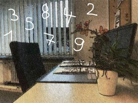 Das Büro auf dem Foto wartet auf eine neue Belegung … und wenn der zukünftige „Bewohner“ bzw. die zukünftige "Bewohnerin" eine Vorliebe für Zahlen hat, wäre das auch sehr passend.