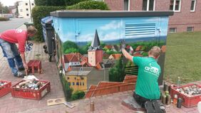 Trafohäuschen, Ortsnetzstationen und Kabelverteilerschränke sind als technische Zweckbauten der Stromversorgung aus dem Ortsbild nicht wegzudenken. Sie gehören dazu wie Straßenlampen oder Verkehrsschilder. Aus den meist unscheinbaren elektrischen Verteil-Anlagen macht Avacon mit Hilfe von professionellen Fassadenmalern in einer über mehrere Jahre angelegten Aktion nach und nach richtige "Hingucker". Ein weiteres solcher Schmuckstück entstand am Freitag in Helmstedt. Dort stand eine Trafostation im Max-Planck-Weg auf dem Verschönerungsprogramm.