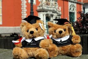 Ein „Professoren-Teddy“ in Anlehnung an die Helmstedter Universitätsgeschichte kann ab sofort in der Info am Markt erworben werden. „Gerade jetzt kurz vor den Abiturprüfungen bietet es sich gut an, einen Teddy an einen Schulabsolventen zu verschenken“ meint Kerstin Körner aus der Info am Markt. Der Teddy kostet 7 Euro.