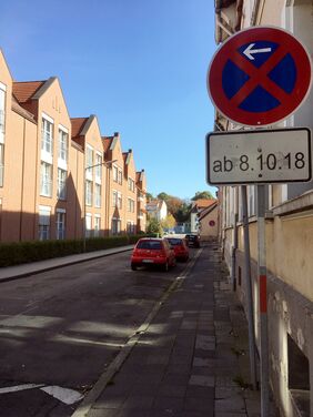Die Baustelleneinfahrt befindet sich in der Rosmarinstraße. Um eine Gefährdung der Verkehrsteilnehmer auszuschließen bzw. keine Komplikationen zwischen dem Lieferverkehr und den Verkehrsteilnehmern zu erzeugen, gilt für die Anwohner-Parkplätze im dortigen Bereich (Beek und Rosmarinstraße) ein absolutes Halteverbot. Als Ausgleich der dadurch fehlenden Bewohnerparkplätze besteht die Möglichkeit, den Parkplatz „Wallplatz“ zu nutzen. Dieser wurde entsprechend gekennzeichnet (Bewohner mit Parkausweis D).