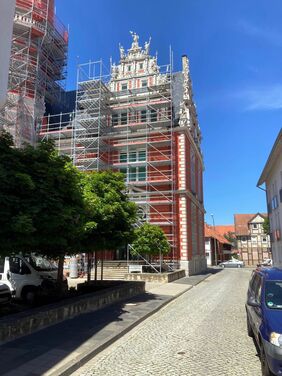 Da das Baugerüst teilweise auf der Straße steht und die Gefahr besteht, dass bei den Arbeiten Bauschutt herunterfällt, wird ein Schutztunnel aufgebaut. Ab dem 30. Juni soll der Verkehr dort dann wieder fließen.