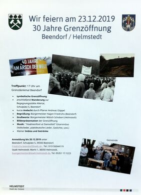 Beendorf und Helmstedt laden zur gemeinsamen Feier „30 Jahre Grenzöffnung“ am 23. Dezember ein.