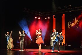 „Buddy in concert-Die Rock´n´Roll-Show“, die mit Hits wie "Peggy Sue", "It's so easy", "Let's Twist again" oder "La Bamba" die Legende BUDDY HOLLY wieder zum Leben erweckt. Aber auch BUDDYs Zeitgenossen werden nicht vergessen. Der Groove von Bill Haley, Fats Domino, Chuck Berry, Chubby Checker u.v.a. wird den Zuschauern in die Beine gehen und man wird Mühe haben, sitzen zu bleiben – muss man aber auch nicht!