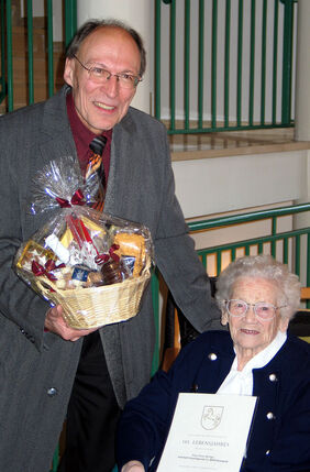 Viel Besuch erhielt Erna Hellge heute im Seniorenpflegeheim am Wallplatz. Nichten und Neffen aus Büddenstedt und Brandenburg kamen, um mit der alten Dame auf ihren 101. Geburtstag anzustoßen. Die in Tangermünde geborene "Tante Erni" - wie sie liebevoll von den Angehörigen genannt wird - lebt erst seit drei Jahren im Heim. Zuvor versorgte sie mit Unterstützung der Familie noch ihr eigenes Haus in Helmstedt. Die Familie nutzte das Treffen, um Erinnerungen auszutauschen. "Mit 99 Jahren ist unsere Tante noch mit dem Flugzeug nach Paris zu einer Hochzeit geflogen" erzählte die Nichte. Bürgermeister Heinz-Dieter Eisermann überbrachte seine Glückwünsche an das Geburtstagskind persönlich und überreichte einen Präsentkorb mit Leckereien.