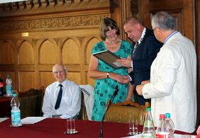 Im Rahmen des Empfangs kam es zu einer Besonderheit. So durfte die englische Organisatorin Collette Boyle, ihres Zeichens Schriftführerin der Chard-Helmstedt Society, aus den Händen von Bürgermeister Schobert eine Ehrung für ihr bürgerschaftliches Engagement entgegennehmen, die ihr bereits im Mai in Chard zuteil geworden war. In der Folge suchte man nach einem würdigen Rahmen zur Aushändigung der Urkunde und fand, dass der städtepartnerschaftliche Empfang dafür geeignet war. Helmstedts Bürgermeister Schobert wurde damit sozusagen für seinen Amtskollegen Garry Shortland in Chard tätig, was immerhin erstmalig in dieser Form geschah. Die Ehrung von Collette Boyle erfolgte übrigens sowohl für ihr Wirken am Austausch mit Helmstedt, als auch für ihre Tätigkeit als Marie-Curie-Krankenschwester, welche sie in ihrer Freizeit ehrenamtlich ausübte. Die Marie-Curie-Charity ist eine in Großbritannien sehr bekannte Wohlfahrtsorganisation, die sich hauptsächlich für die angemessene Betreuung von unheilbar Kranken einsetzt.