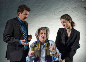 Und so drastisch, wie dieser Elfenbeinturm-Bewohner auf die raue Wirklichkeit stößt, so sarkastisch entblößt das Kabarett die bittere Realsatire der Politbühne.