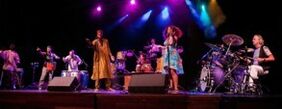 Die Kreativität des Ensembles ist damit aber noch lange nicht erschöpft: die Trommler sind auch alle gut bei Stimme! Immer wieder wirbeln die Musiker in verschiedenen landestypischen Trachten tanzend mit ihren Trommeln über die Bühne oder geben fetzige Scat-Gesang Einlagen zum Besten. Der Scat-Gesang ist Ursprung eines jeden Rhythmus. Weltweit ist es Sitte, dass Lehrmeister alter Traditionen ihren Adepten zunächst vorsingen, was sie zu trommeln haben. Viele Legenden verehren die Trommel als die Mutter aller Instrumente. Sie ist wohl das erste und archaischste Inst¬rument der Menschheit, der Ursprung der Musik.