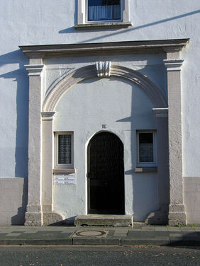 Das Portal des ehemaligen Stadthauses und ein Fensterbogen sind heute noch zu sehen. Im Haus Mosheimstraße 1 wurden diese Teile beim Hausbau integriert.