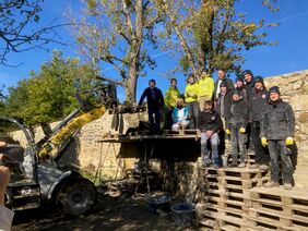 Die jungen Handwerkinnen und Handwerker gehören zur freiwilligen mobilen Einsatzgruppe, die sich im Rahmen ihres Freiwilligen Sozialen Jahres für die Jugendbauhütte und damit für handwerkliches Arbeiten im Bereich des Denkmalschutzes engagieren.