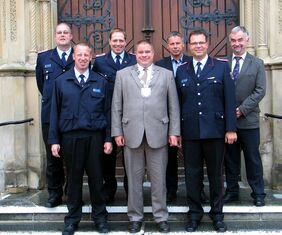 Die Übergabe der Ernennungsurkunden bzw. die Übertragung der Aufgaben erfolgte durch Bürgermeister Wittich Schobert im Rahmen einer Feierstunde. „ Ich danke Ihnen für Ihre Be-reitschaft die Ehrenämter für die Stadt Helmstedt zu übernehmen und freue mich, dass die Führungsmannschaft der Feuerwehren in Helmstedt damit wieder komplett ist!“ brachte Bür-germeister Schobert zum Ausdruck. Weitere Teilnehmer waren Erster Stadtrat Klaus Junglas, der zuständige stellvertretende Fachbereichsleiter Frank Kemmer sowie Stadtbrandmeister Stefan Müller. Der Rat der Stadt Helmstedt hatte die Ernennungen am 21.06.2012 beschlos-sen.