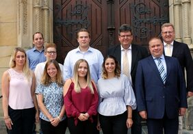 In einer Feierstunde beglückwünschte Bürgermeister Wittich Schobert gemeinsam mit dem Geschäftsbereichsleiter Thomas Bode vier junge Verwaltungsmitarbeiter, die am 1. August bei der Stadt Helmstedt ihre Ausbildung beginnen bzw. befördert werden.