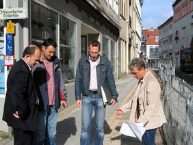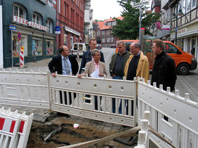 Zur regelmäßigen Baustellenbesprechung trafen sich heute die an der Bauausführung betei-ligten Firmen. Hierbei konnten sich die Vertreter der Firmen Otto Rohr und BW-Ingenieur-Bau GmbH, der Purena GmbH und E-ON Avacon AG sowie der Stadt Helmstedt ein Bild von dem nun fertig gestellten ersten halbseitigen Abschnitt der Pflasterarbeiten machen.