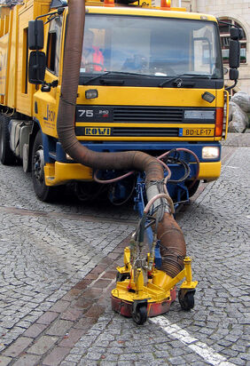 "Wir bringen Wasser per Hochdruckpumpe auf die Oberfläche. Mit einem klar definierten Druck (2,5 bis 3.000 bar) beseitigen wir die Markierung von der Fahrbahn. Es wird ausschließlich Wasser verwendet (15 bis 20 Liter in der Minute). Die Technologie kommt von den Flughäfen; dort werden die Oberflächen der Start- und Landebahnen regelmäßig von Gummi befreit."