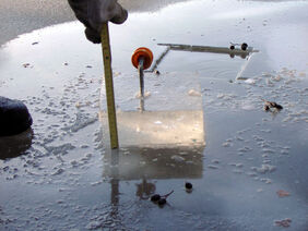 Die Überprüfung der Eisstärke wird bei länger anhaltenden Frostperioden begonnen. Die Kerneisstärke ist durch Heraussägen von Eisquadern zu ermitteln, wobei pro Teich mindestens 4 Probepunkte festgelegt werden. Da die Überprüfung täglich mit 2 Personen durchzuführen ist, unterstützt das Helmstedter THW die notwendigen Eiskontrollen in Abstimmung mit der Stadt Helmstedt.