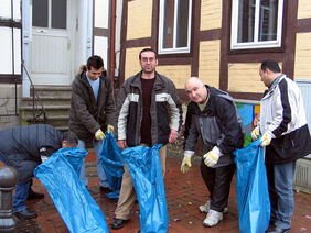 Zum Aufenthalt ins Feie lud das Wetter am vergangenen Samstag nicht gerade ein. Trotzdem machten sich rund 200 Freiwillige auf den Weg, um Bürgermeister Heinz-Dieter Eisermann bei der diesjährigen Frühjahrsputzaktion zu unterstützen. Reichlich durchnässt trafen die Helferinnen und Helfer dann zur Mittagszeit auf dem Marktplatz ein, um sich bei heißer Erbsensuppe und mitreißenden Klängen von eagle ´n hawk von den Mühen des Müllsammelns zu erholen. "Gerade weil uns das Wetter so mies mitgespielt hat, freue ich mich über Jeden, der sich heute für die Stadt auf den Weg gemacht hat" dankt Bürgermeister Eisermann allen Helferinnen und Helfern.