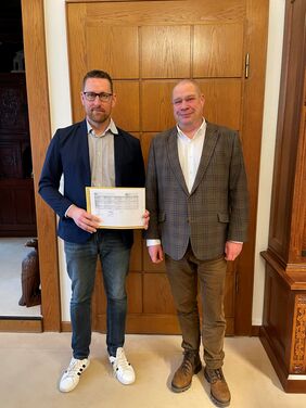 Verbandsgemeindebürgermeister Tim Krümmling und Bürgermeister Wittich Schobert begrüßen die Zusammenarbeit sehr und betonen die Bedeutung eines starken Netzwerkes für den Brandschutz.