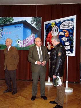 Je intensiver ich mich jedoch mit dieser Ausstellung beschäftigt habe, desto mehr habe ich einen anderen Blick für diese Thematik bekommen. Ich stimme mit Ihnen überein, Herr Lehmann, wenn Sie sagen „Besser man redet über ein Phänomen, als es tot zu schweigen.“ Und genau deshalb haben wir uns auch dazu entschlossen, diese Graffiti-Ausstellung hier im JFBZ einer breiten Öffentlichkeit anzubieten. Natürliche hoffe ich dabei auch, dass zahlreiche Schüler und Jugendliche den Weg hierher finden. Deshalb freue ich mich natürlich auch sehr, dass die Presse heute so zahlreich erschienen ist und dass diese Ausstellung darüber hinaus vom Fernsehsender TV 38 aus Wolfsburg begleitet wird. Ihnen allen, die Sie das Thema Graffiti an die Öffentlichkeit transportieren, meinen herzlichen Dank dafür.