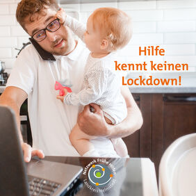 Quarantäne, Isolation, man trifft keine Freunde mehr und überhaupt: Wo können Eltern hin mit all ihren Sorgen? Zu diesem Zweck hat sich das Netzwerk Frühe Hilfen die Kampagne „Hilfe kennt keinen Lockdown!“ überlegt. Mit dem Bild eines Vaters, offensichtlich im Home Office mit Kinderbetreuung und dem Essen auf dem Herd soll eine breite Zielgruppe angesprochen werden. „Und ein kleiner Wink mit dem Zaunpfahl soll es auch sein“, verrät Netzwerkkoordinatorin Carina Weferling. „Oftmals sind es nämlich eben doch nur die Frauen, die diesen Spagat hinlegen und weniger die Väter. Vielleicht ändert die Kampagne ja auch diese Sichtweise.“