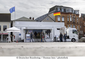 Das Infomobil des Deutschen Bundestagesist vom 29. bis 31.August in Helmstedt auf dem Marktplatz zu Besuch.
