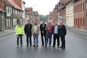 Mit den hergestellten Oberflächen zeigt sich auch Kai Engel vom Fachbereich Straßenbau der Stadt Helmstedt bei der Bauabnahme sehr zufrieden, der betont, „dass insbesondere die Anschlussbereiche der unterschiedlichen Baustoffe ausgesprochen gut ausgeführt worden sind“.