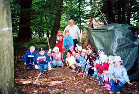 Eine ganze Woche waren die Kinder des Kindergartens Butterblume mit ihren Erzieherinnen im Wald unterwegs. Schon der Weg dorthin war spannend. Die Kinder kamen an einer Kuhwiese vorbei. Ein Kind bemerkte „Guck mal, die haben ja Ohrringe.“