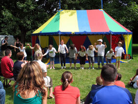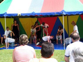 Mehr als 40 Zuschauer fanden sich im Park am Langen Wall ein, um die Kunststücke der Kinder zu bewundern. 10 Mädchen und Jungen hatten sich eine Woche auf die Gala-Vorstellung des Mitmachzirkus vorbereit. Mit Kunststücken wie Jonglieren, Balancieren und Stelzengehen wurden die Zuschauer gut unterhalten. Wie im vergangenen Jahr wurde dieser Workshop von drei Studentinnen im Rahmen der Ferienpass-Aktion angeboten. Ines (20), Mia (27) und Silvia (26) aus Braunschweig übten die Kunststücke mit den Kindern ein und sorgten zwischendrin immer wieder für entspannende Spielaktionen.