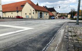Nach den Asphaltierungsarbeiten werden am heutigen Donnerstag, 22. April, die Straßenmarkierungen aufgebracht. Ab dem späten Nachmittag kann die Kreuzung Am Luderihof/Türkentor wieder ohne Einschränkungen passiert werden.