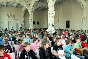 Morgens um neun im Juleum: Schülerinnen und Schüler füllen die Plätze, die Aula der ehemaligen Universität ist mit Leben erfüllt. Zum 2. Mal bietet die Stadt Helmstedt in Zusammenarbeit mit dem Ideengeber der Kinder-Universitätstage, Helmut Strozyk, und den Helmstedter Schulen diese spannende Veranstaltung an.