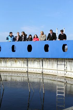 Nach einem Rundgang über das Betriebsgelände, bei dem Abwassermeister und Leiter der Kläranlage, Carlo Barbarito, die technische Abläufe der Kläranlage erläuterte, analysierten die 11 bis 14-jährigen Schülerinnen Proben im Labor und konnten unter Anleitung des Aus-zubildenden Jonas Niermann und Carlo Barbarito eine Pumpenstrecke aufbauen.
