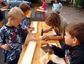 Im Rahmen der Ferienpass-Aktion veranstaltete das JFBZ eine Skulpturenwerkstatt. Die Kinder bekamen Werkzeug und Material und bastelten daraus Skulpturen nach eigener Vorstellung. „Erstaunlich war, das fast alle Kinder das Werkzeug kannten und sogar die Umgehensweise damit“ erzählt Britta Rohm vom JFBZ-Team, „so konnten die Kinder nach einer kurzen Einführung gleich loswerkeln“. Am ersten Tag entstanden die Ideen und die ersten Nägel wurden verarbeitet und langsam nahm alles Form an. Schleifen und Malen war dann am nächsten Tag angesagt. Die Figuren bekamen Gesichter und wurden bunt bemalt und mit Filz und anderen Materialien verziert. „Zwei wirklich tolle Tage, an denen die Kinder sich handwerklich betätigen konnten. Wegen der großen Nachfrage planen wir im nächsten Jahr ein größeres Angebot im Ferienpass“ ist das Resümee von Britta Rohm zu dieser Aktion.