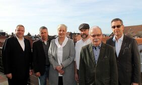Foto v. l.: Bürgermeister Wittich Schobert, Frank Kemmer (Stadt Helmstedt), Andrea Jostschulte (Amtsgericht Helmstedt) sowie der scheidende Schiedsmann Lars Pollex und die amtierenden Schiedsmänner Detlef Niebuhr und Peter Benke