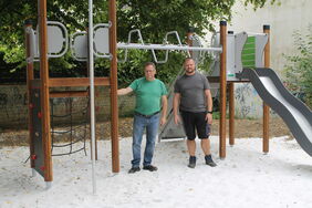 Neue Spielgeräte hat der Betriebshof der Stadt Helmstedt auf dem Spielplatz am Schützenwall neben dem Julius-Bad aufgestellt. „Die bisherigen Spielgeräte waren allesamt abgängig, daher haben wir uns für eine komplette Umgestaltung des viel genutzten Spielplatzes in der Innenstadt entschieden“, führt Betriebshofleiter Guido Kuschenek mit Freude aus. Seine Mitarbeiter Adrian Jentsch und Burghard Rabe haben in den vergangenen Wochen ein Multispielgerät mit Rutsche, eine Wippe sowie eine Schaukel errichtet. „Es wird aber auch noch eine Federwippe aufgestellt und wir werden schauen, dass wir den gesamten Platz noch etwas begrünen, damit das nun entstandene ordentliche Gesamtbild noch abgerundet wird“, so Kuschenek weiter.