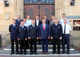 An der Feierstunde im Rathaus nahmen auch der Erste Stadtrat Henning Konrad Otto und Frank Kemmer vom zuständigen städtischen Fachbereich, Emmerstedts stellvertretender Bürgermeister Friedrich-Wilhelm Diedrich, der stellvertretende Stadtbrandmeister Marc Wesemann sowie Vertreter der Ortsfeuerwehren Büddenstedt und Barmke teil.