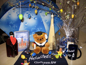 Die Stadt Helmstedt bietet eine Vielzahl an praktischen Geschenkideen an, wie z. B. Krawatten, Regenschirme mit Wassertropfen-Design, hochwertige Kugelschreiber mit Magnethalter, Teddybären und Kaffeebecher. Kommen Sie zum Ostereinkauf in die Info am Markt, Markt 7/8. Die Stadt ist Mitglied der helmstedt Card, so dass Kunden auf Ihre Einkäufe die begehrten Sammelpunkte erhalten. In der Zeit vom 06.04. bis 17.04.2009 bekommt man im Rahmen der Osteraktion gegen Vorlage des Coupons z. B. eine Helmstedt-DVD mit Kugelschreiber und Block sowie eine Baumwolltasche zum Preis von 7,- €.