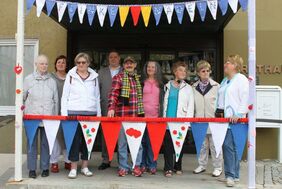 Mit Selbstgestricktem verschönerten die „Flinken Nadeln“ den Rathauseingang am Holzberg. Die Initiative der Freiwilligen-Agentur des Paritätischen Helmstedt möchte damit auf das Ehrenamt aufmerksam machen und auch Andere zur ehrenamtlichen Arbeit animieren.